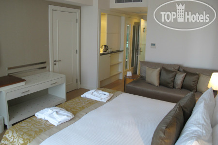 Отдыхали с 02.08.2025 по 11.08.2025. Приехали утром, в 11.30 нам написали, что номер готов, но в итоге предложили заселиться на сутки с соседний отель Adalya Elite Lara (нам там понравилось, не пожалели, что согласились), а за это нам обещали поздний выезд из номера, шатер на день и ресторан а ля карт (хотя в одном отзыве прочитала, что посещение 1 раз бесплатно, если от 7 ночей отдых, но на сайте такой информации нет), еще подарили пляжную сумку.